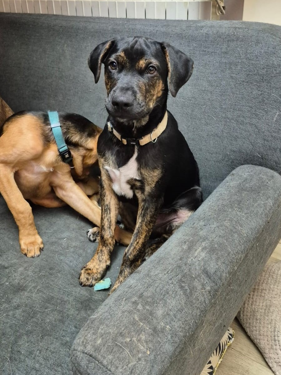 Ares, c’est un chiot plein d’amour et de tendresse. Tout droit venu de Guadeloupe, il découvre la vie ici avec curiosité et courage. Un peu impressionné par la ville et les voitures, il fait chaque jour des progrès, toujours avec beaucoup de calme et de douceur.
