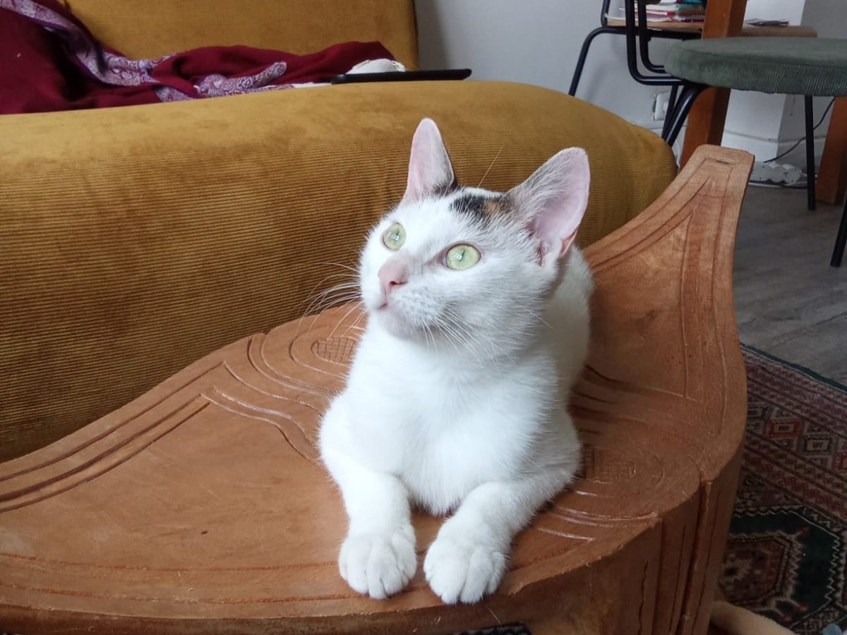 Ariane est une jolie chatte d’environ un an. Abandonnée dans une chapelle en Guadeloupe et malheureusement malmenée par des personnes, elle garde pourtant une incroyable gentillesse et une grande sociabilité