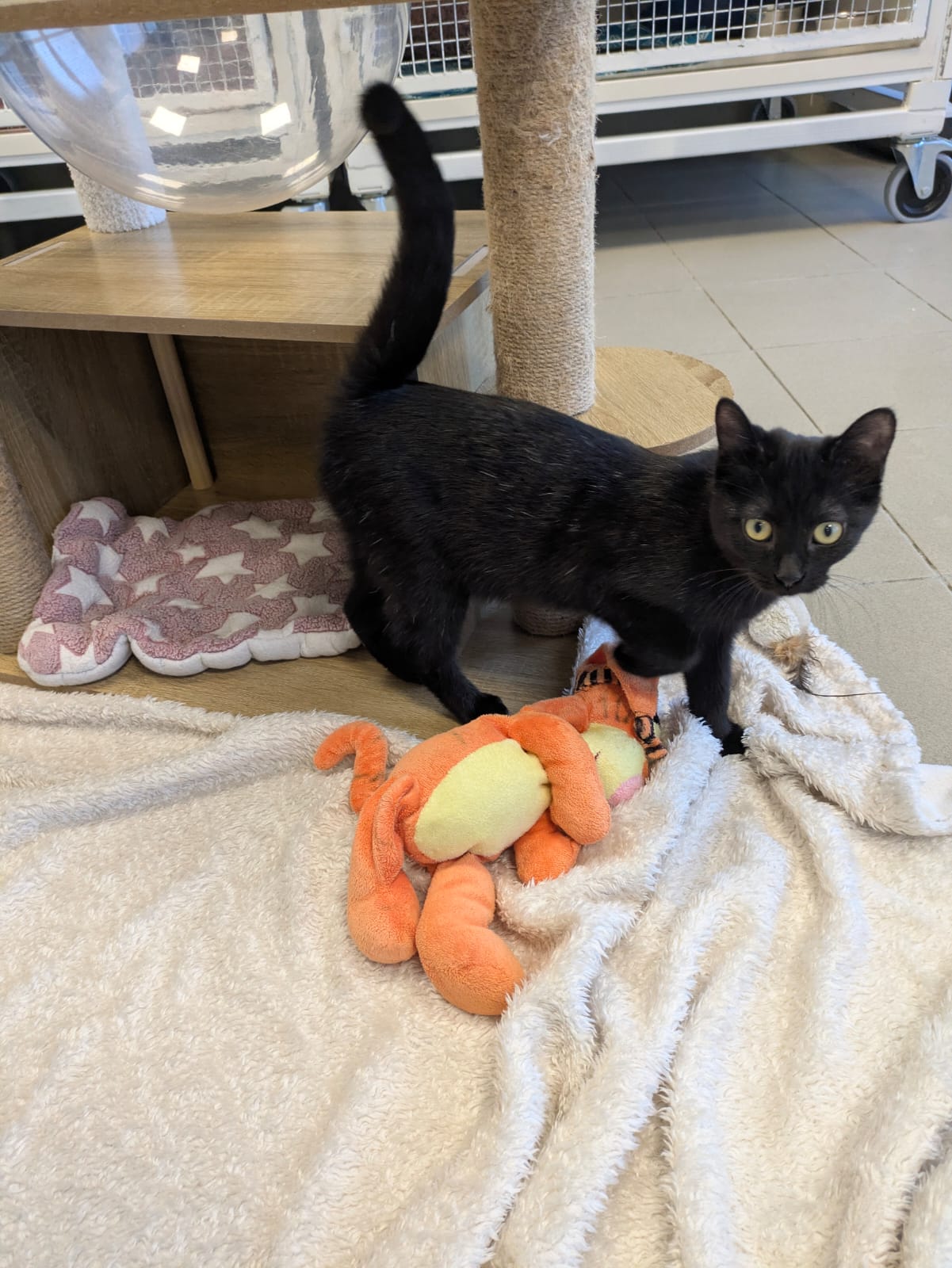 Arrivé avec son frère Basalte, ce petit coquin attend sa famille ! Il est très attendrissant et joueur, et c’est un vrai petit curieux…