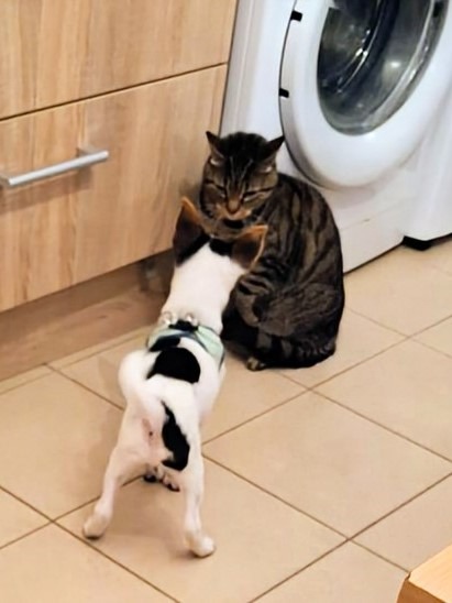 bien avec les chiens, les chats, les personnes, et aussi les enfants. Il peut rester un
