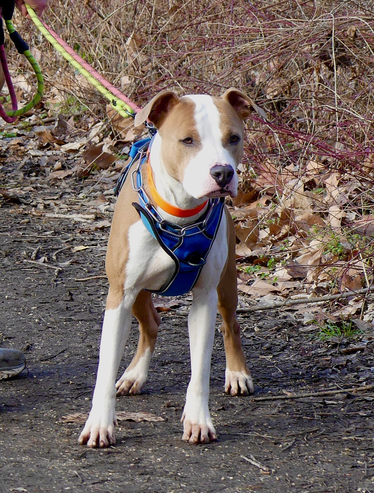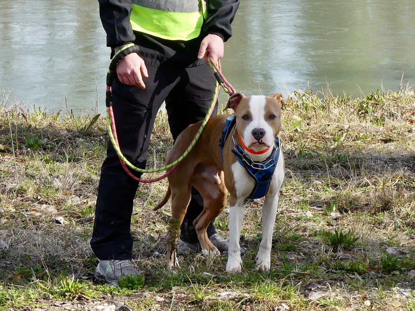 Baldur est un croisé American Staff, non catégorisé, arrivé chez nous suite à une enquête. Son propriétaire a fait le choix de nous le céder, ainsi que sa sœur Lisa, afin de leur offrir de meilleures conditions de vie.