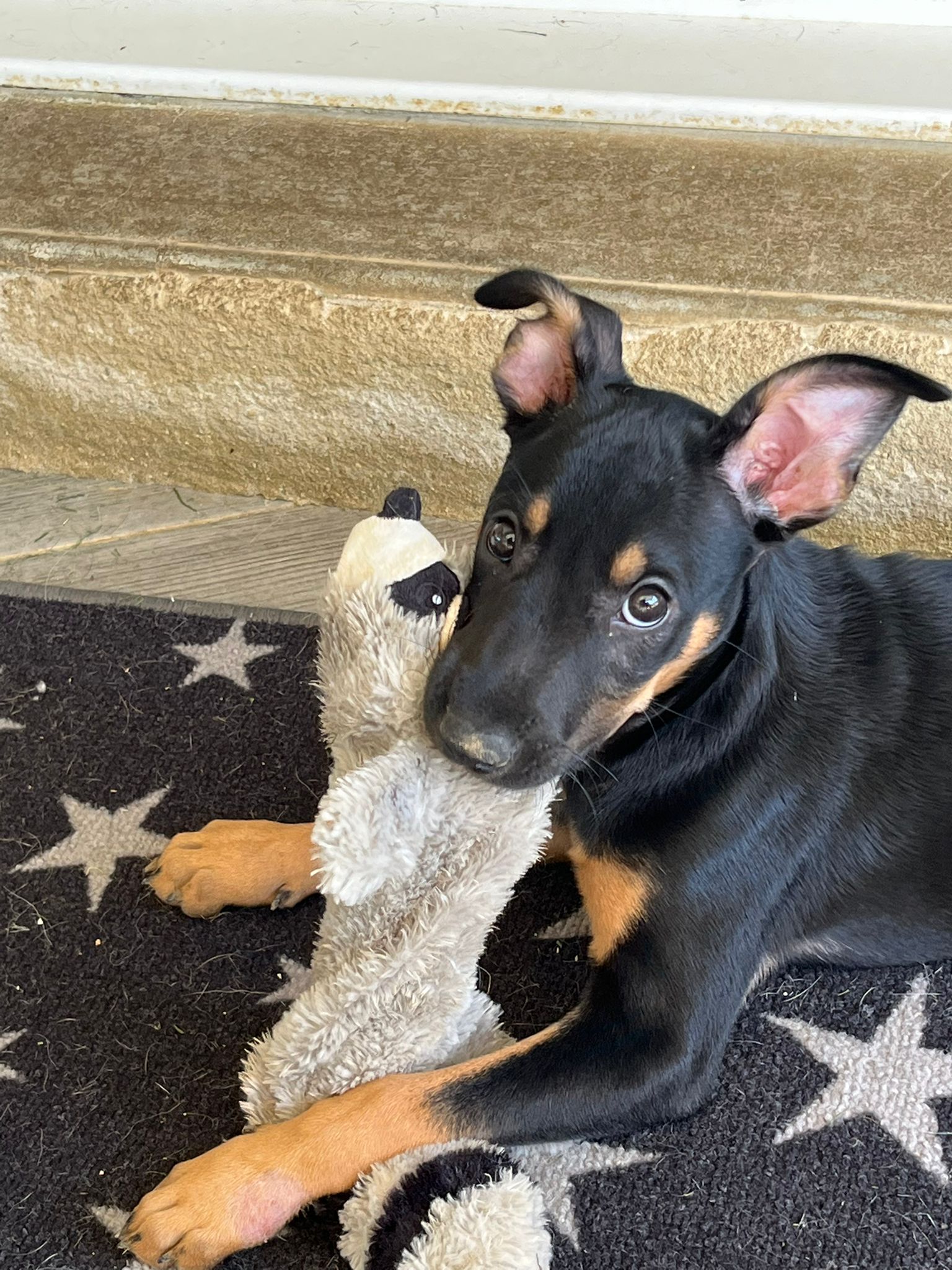 Je suis en cours d’acquisition de la propreté et comme je suis très gourmande cela facilitera les choses. Je suis très câline et joueuse et je m’entends avec tous les copains chiens, petits et grands.