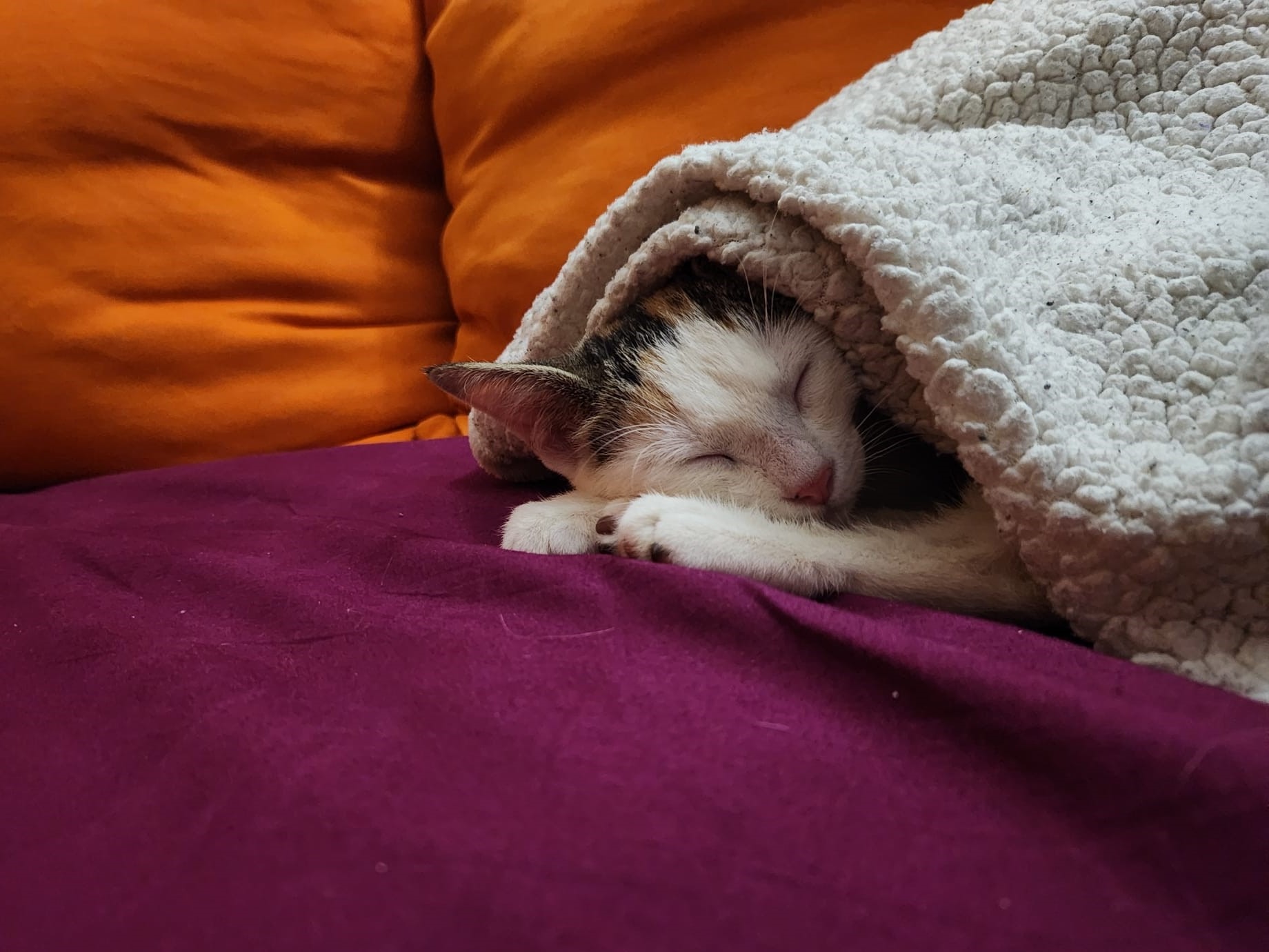 Elle aime la proximité pour s’endormir, les petits jouer à grelots, les plaids tout doux.