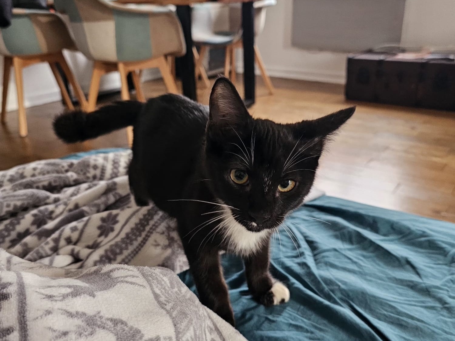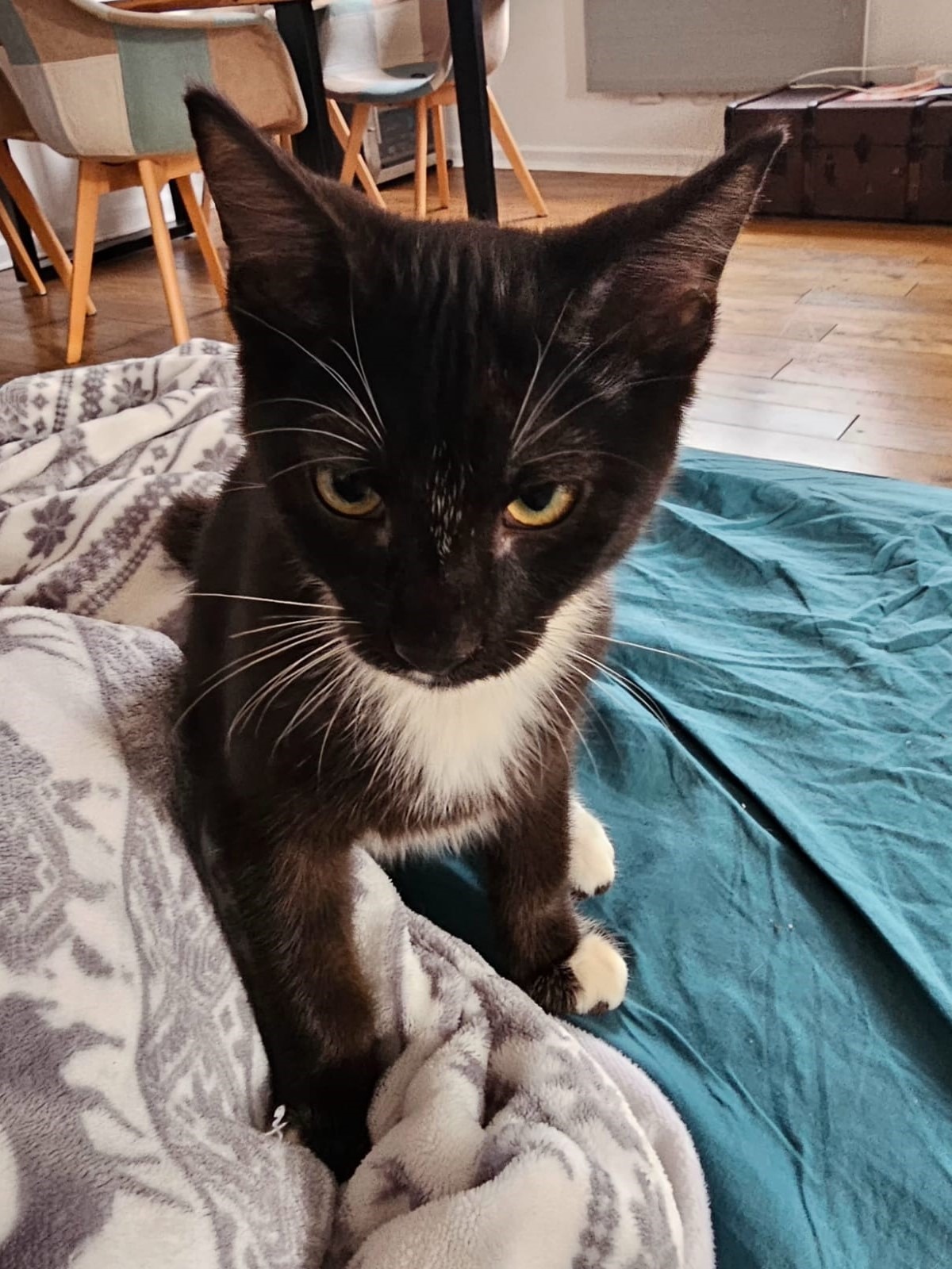 Cabriol est un chat très joueur, qui adore les câlins et se blottir sous des plaids pour dormir