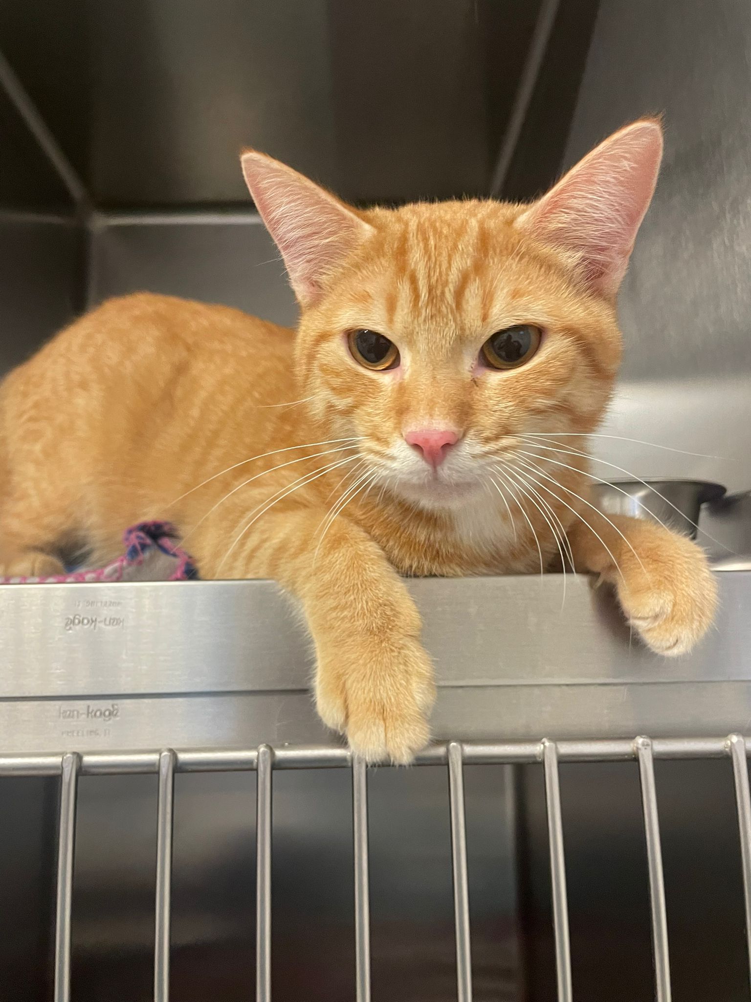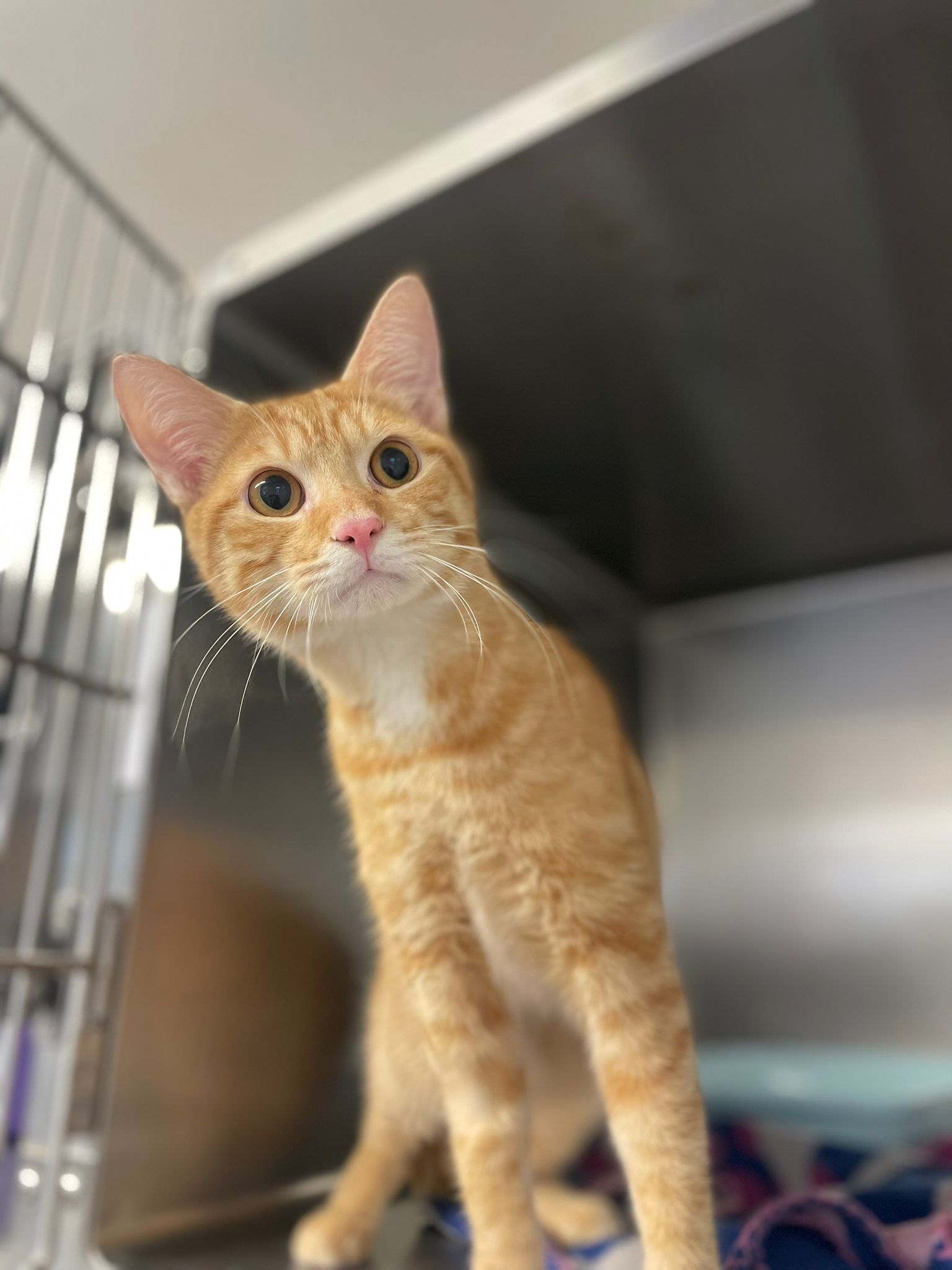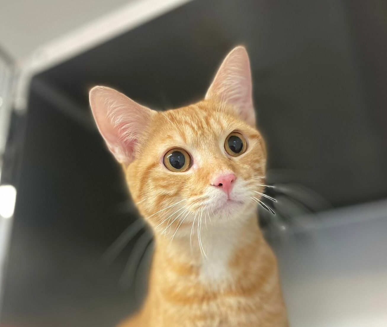 Arrivé de Guadeloupe par l’association COPA Guadeloupe, Carinio est un magnifique grand chaton roux qui attire immédiatement le regard.