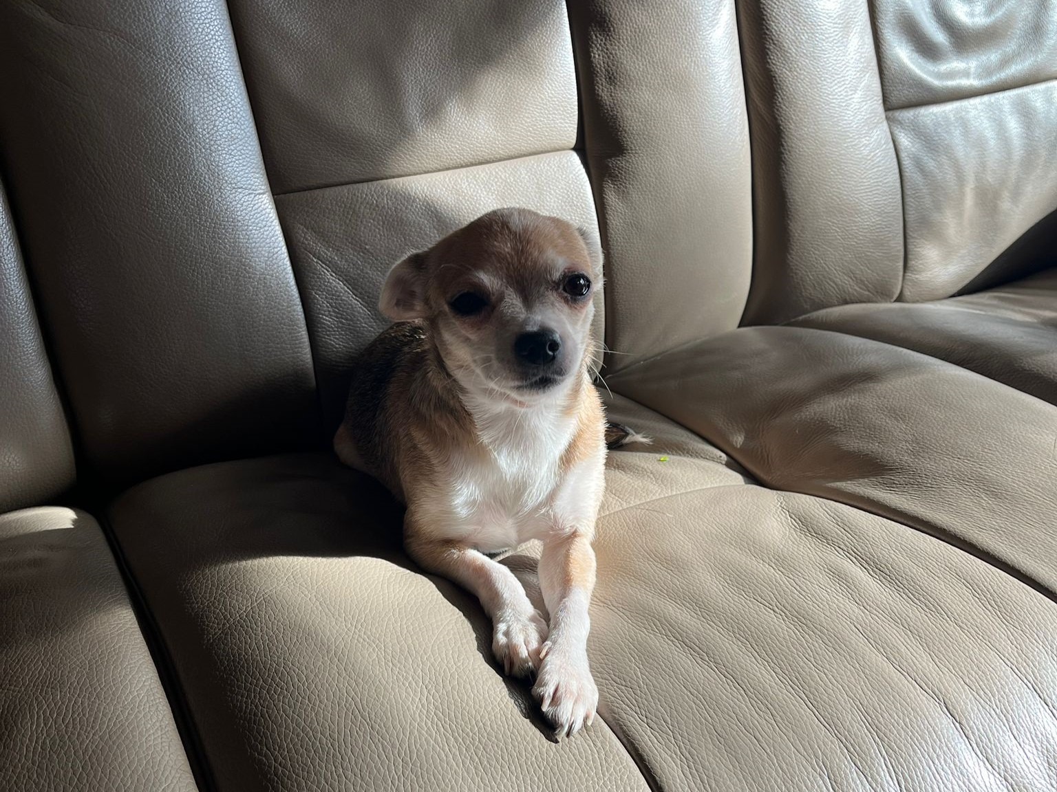 Chouchou, petite chihuahua de 5 ans, nous vient tout droit de Guadeloupe.