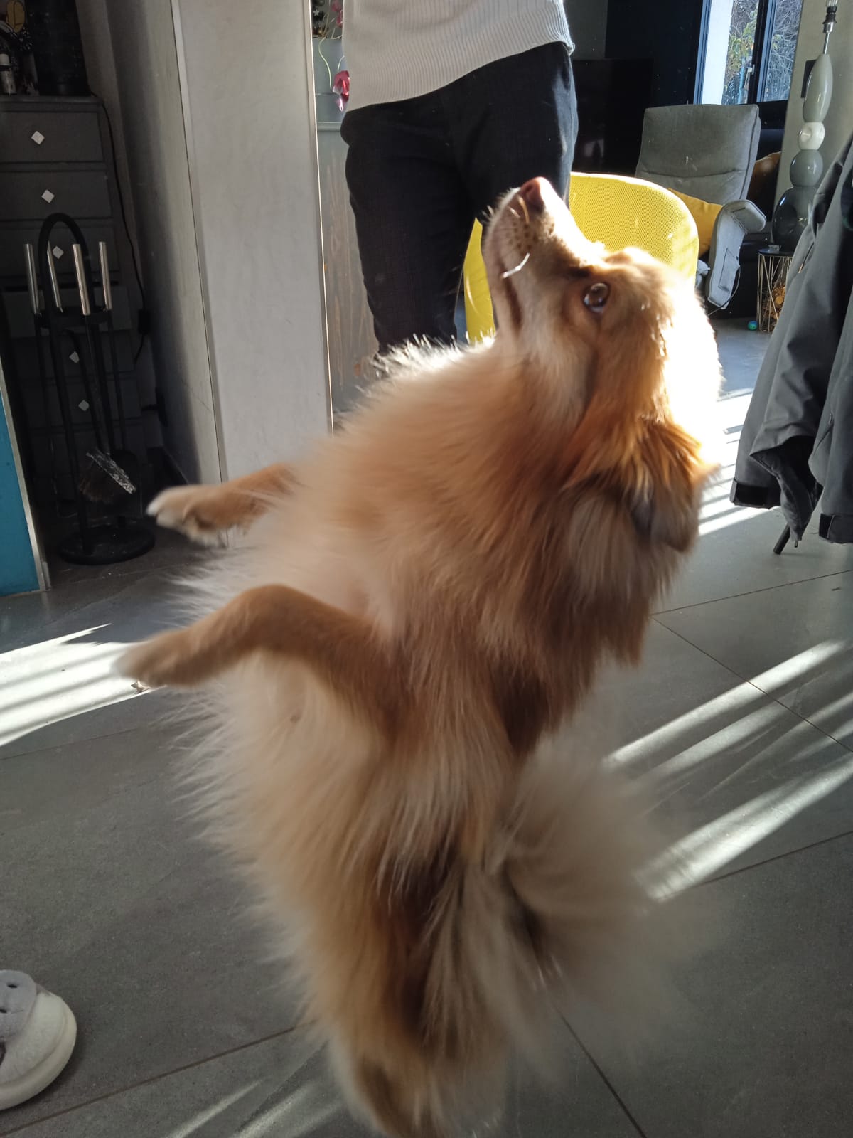Cookie est un adorable Spitz allemand au tempérament aussi pétillant que son regard. Véritable boule d’énergie, il est très collant, ultra affectueux et toujours partant pour jouer. Cookie adore la compagnie humaine et sait parfaitement se faire remarquer quand il a besoin d’attention… ou de câlins