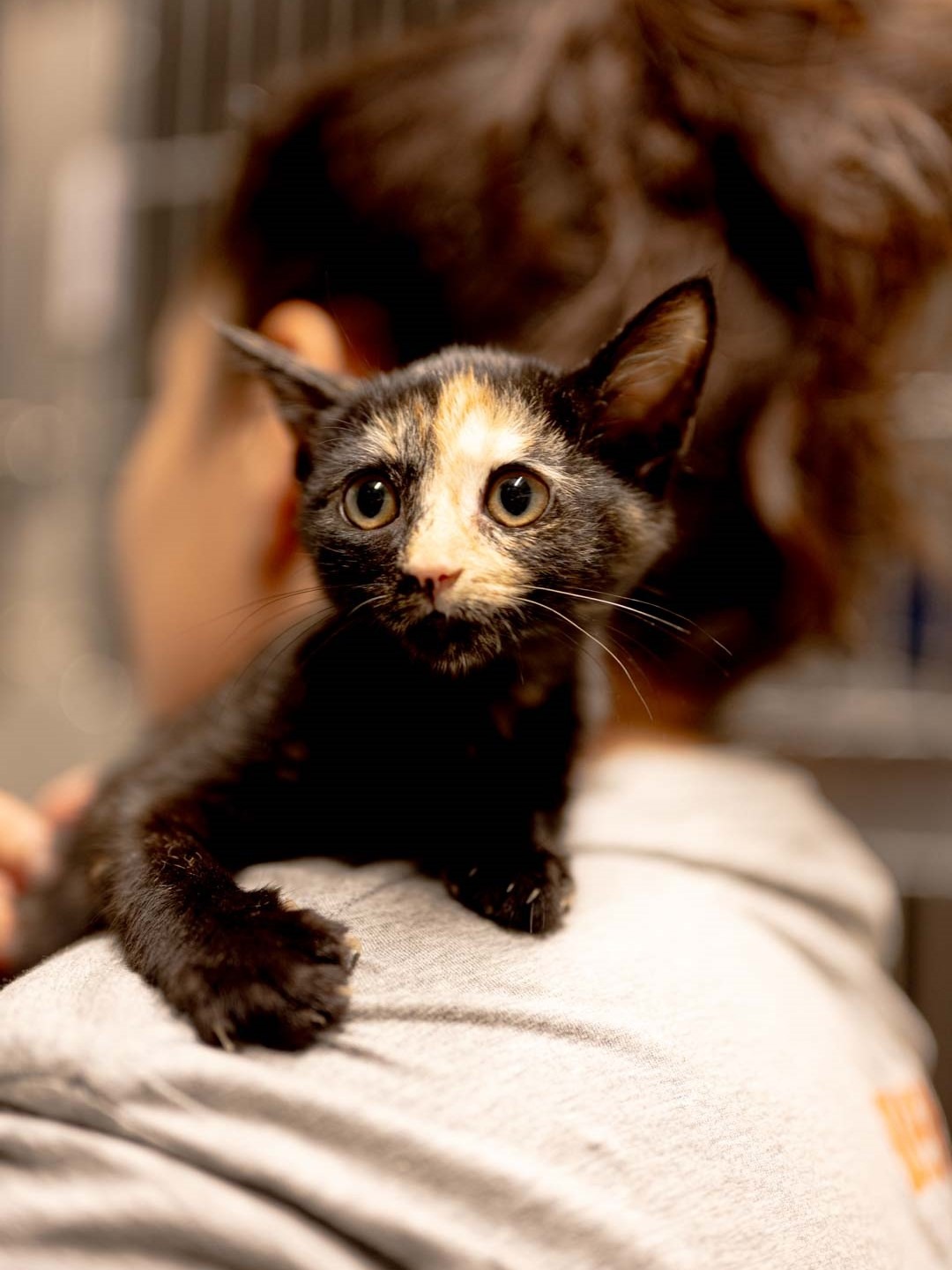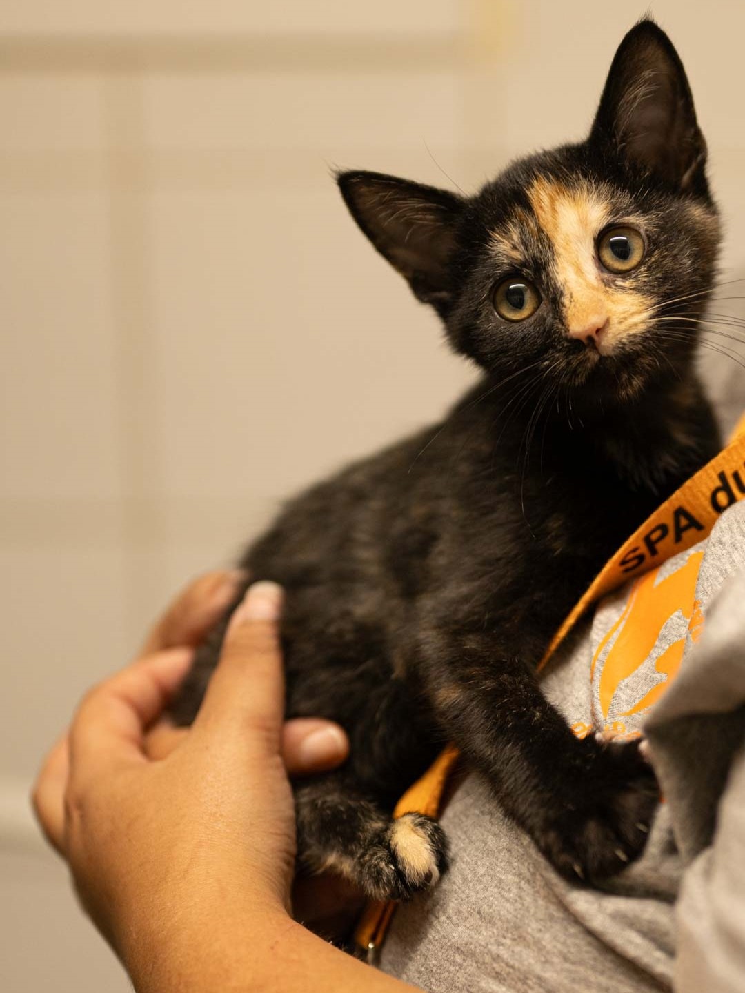 C’est un amour de chaton, pleine d’énergie et de tendresse, qui ne demande qu’à trouver sa famille pour la vie