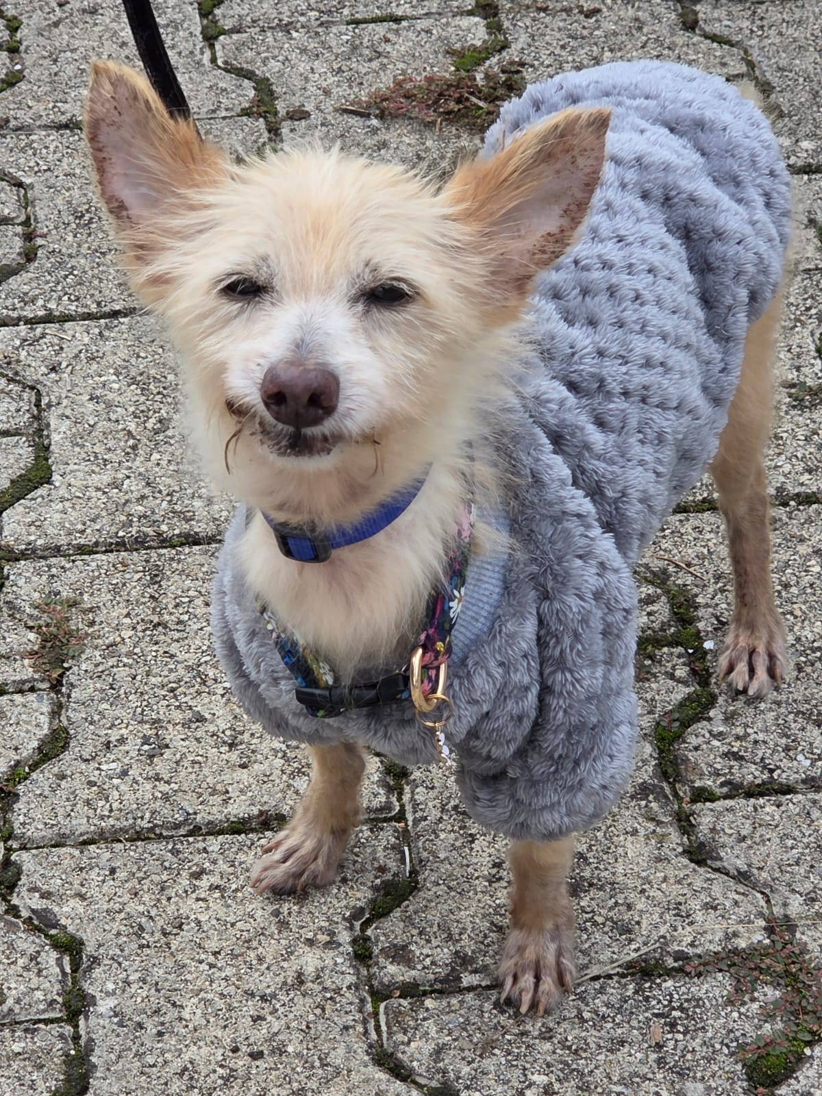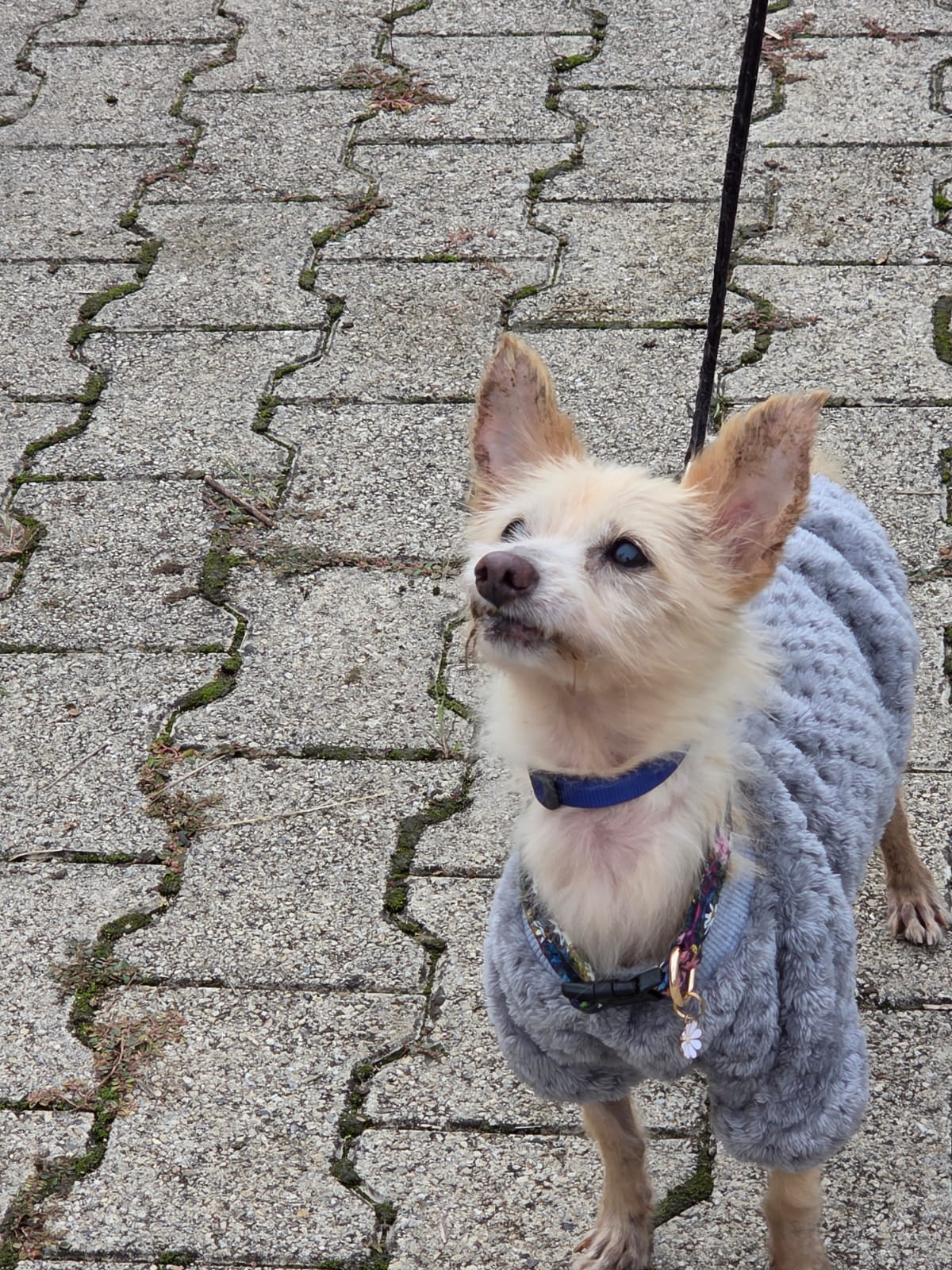 Malgré ses 13 ans, Flamby est en forme. Il aime la compagnie et la présence humaine, et il s’entend très bien avec ses congénères.