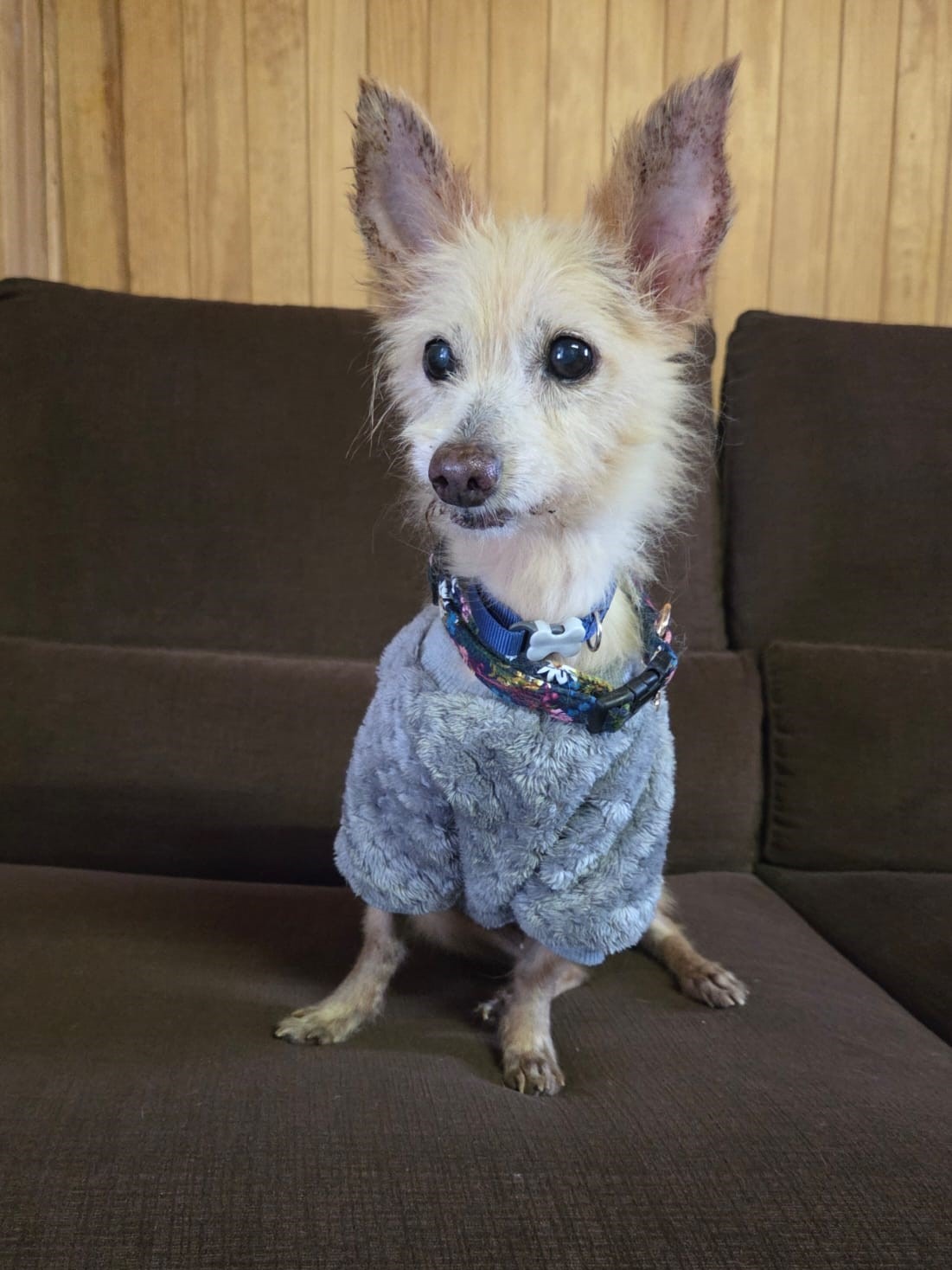 Ce courageux loulou a eu un début de vie difficile : abandonné lâchement dans une forêt, il a été retrouvé très maigre et avec des problèmes de peau.