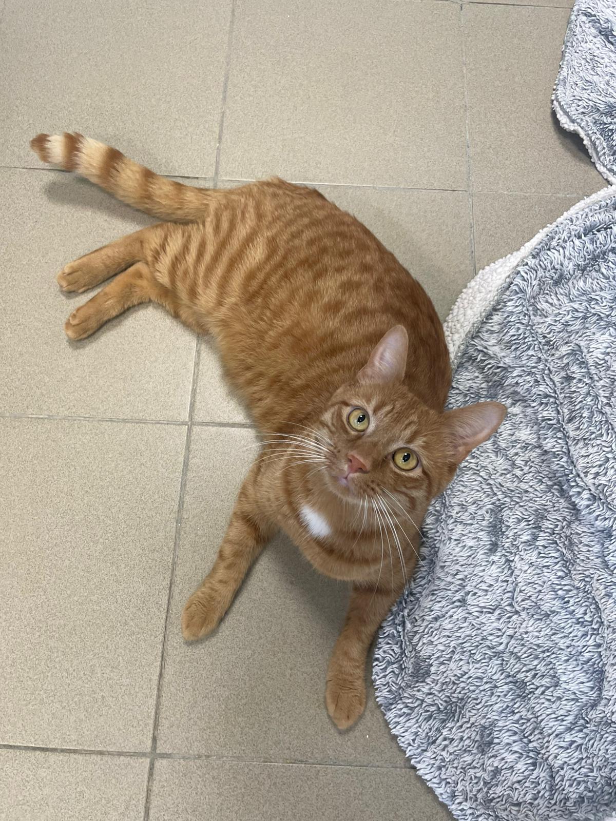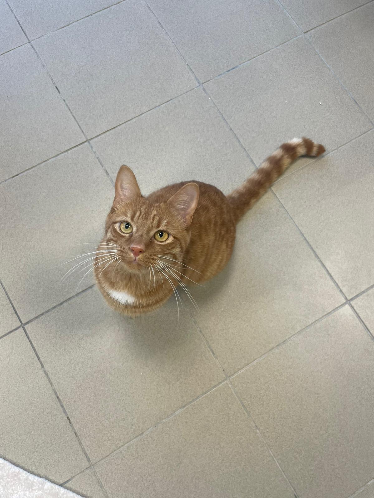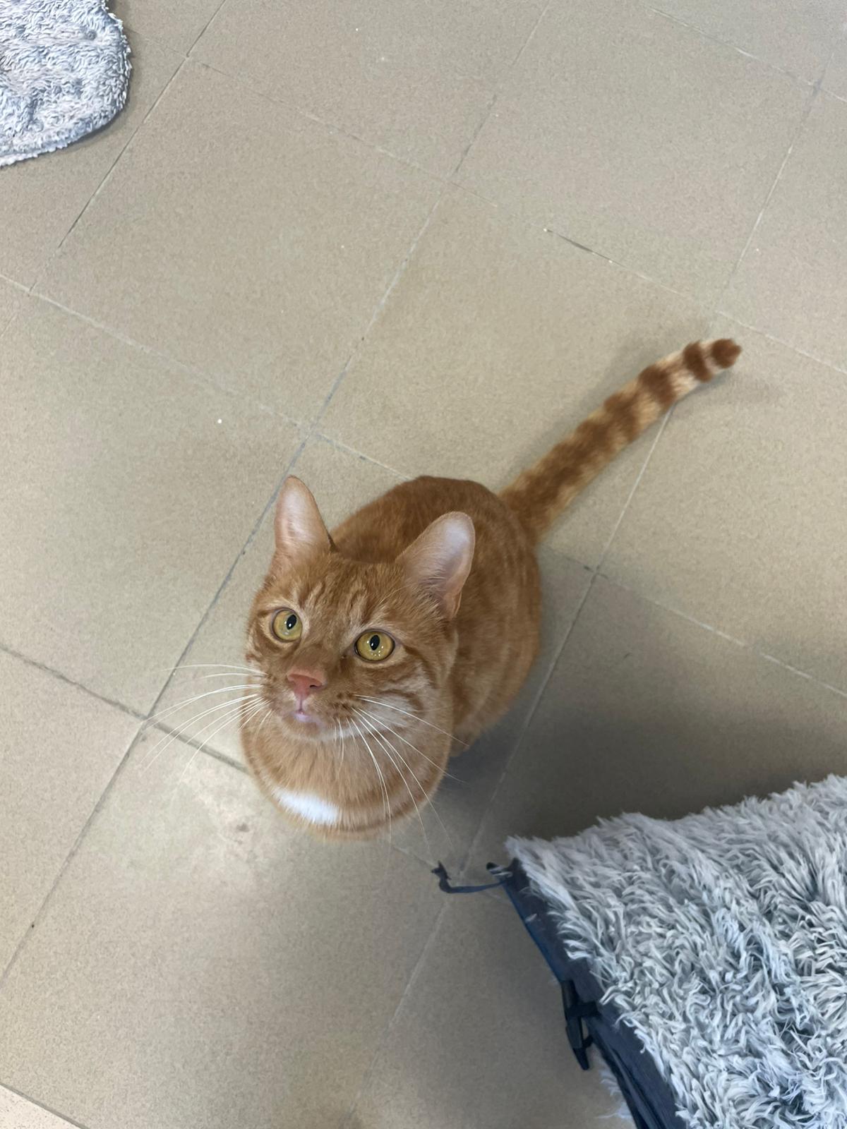 Attention, voilà un grand matou roux en demande continue de câlins ! Il fait savoir oralement son grand besoin d’attention… Il a beaucoup d’énergie et de présence, et pour cela il aura besoin d’une maison avec extérieur.