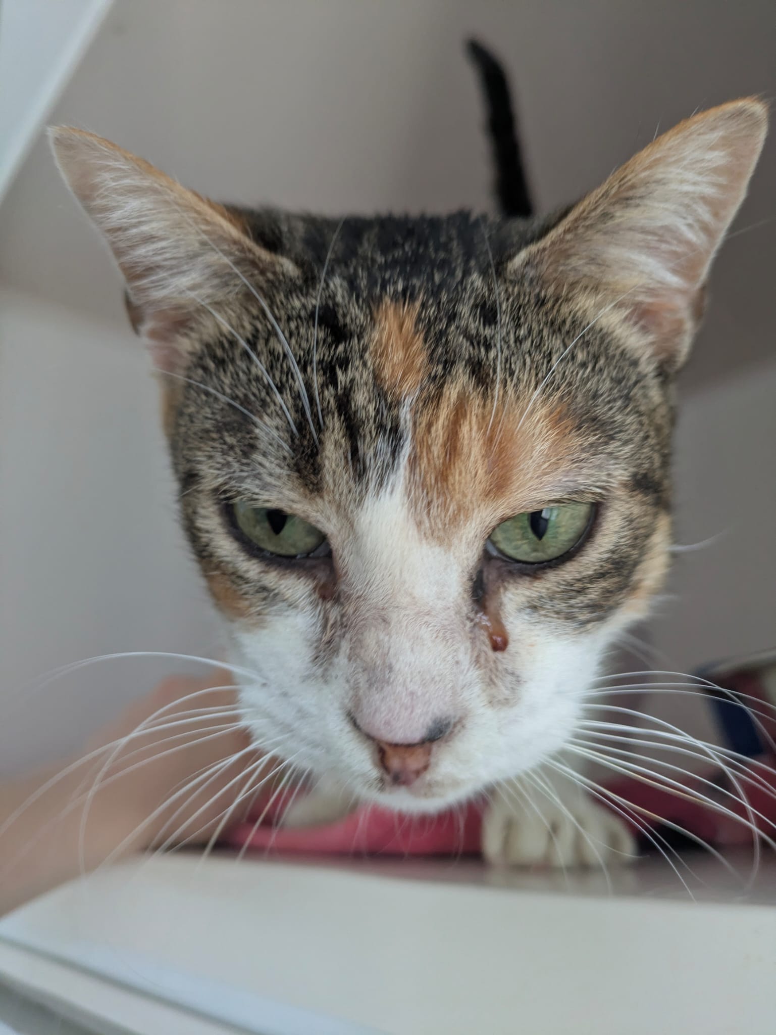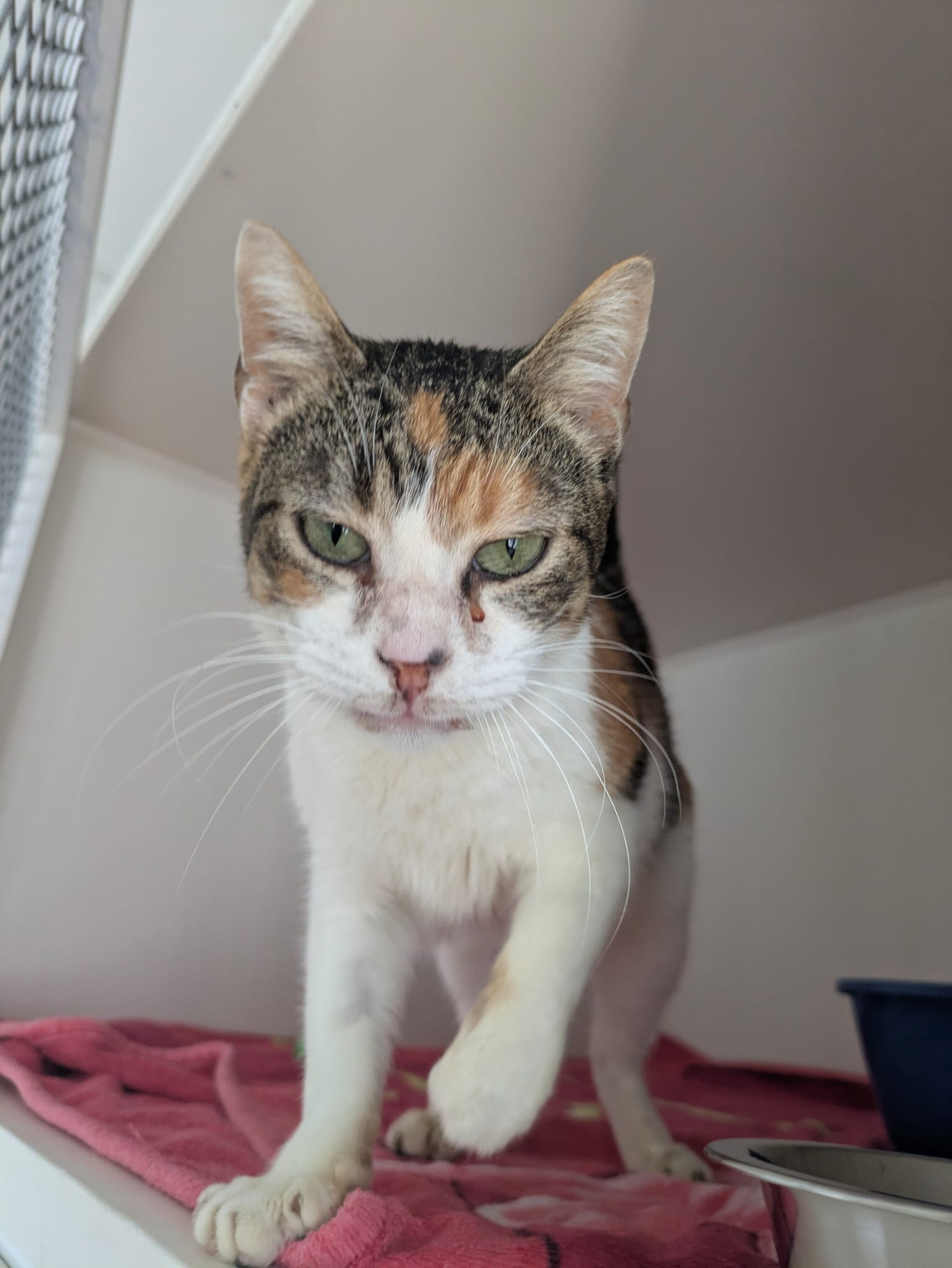 Voici Hbiba, une minette marocaine arrivée il y a peu de temps. Une dame les a récupérés dans la rue lorsqu’ils étaient chatons et ne pouvait malheureusement plus s’en occuper. Ils ont tous les quatre une gingivite mais cela ne les empêche pas du tout de manger.