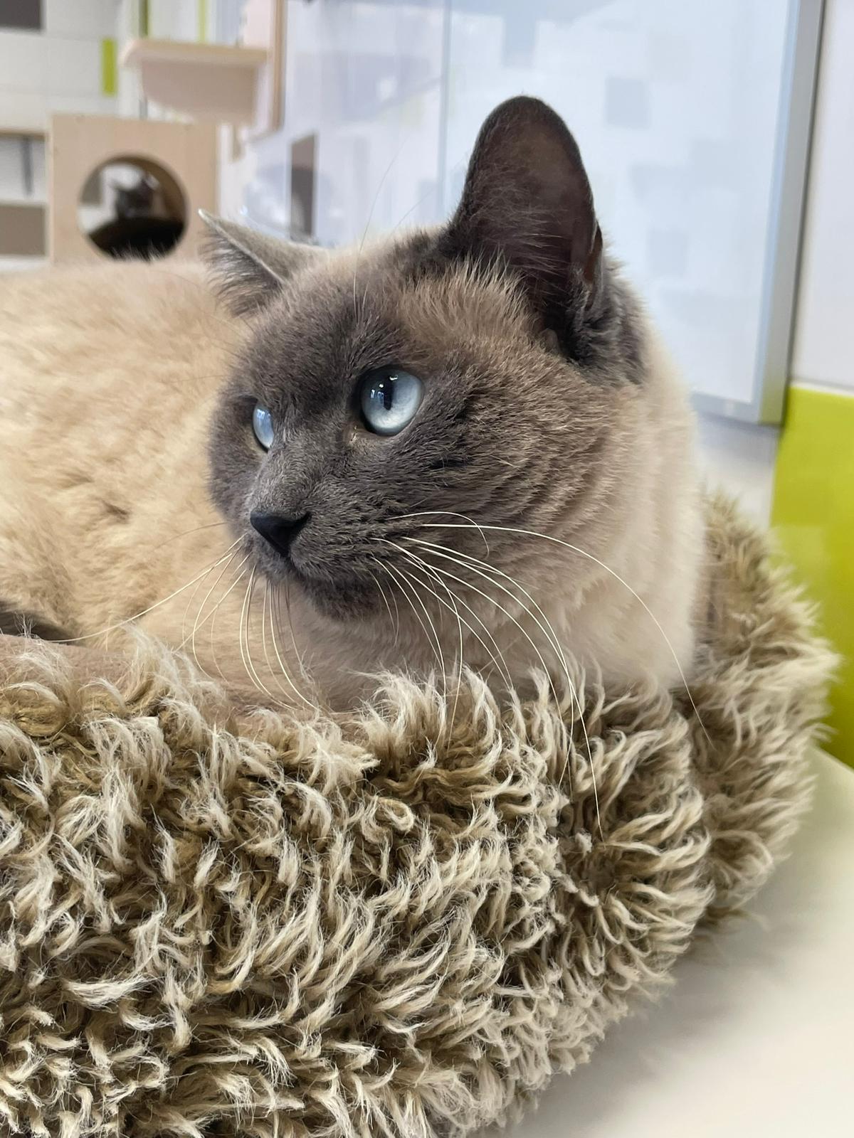 D’un naturel réservé au refuge, elle attend souvent que l’agitation des visites retombe pour sortir de son panier et se faire caresser. Elle aura besoin de calme et de douceur pour s’épanouir pleinement.