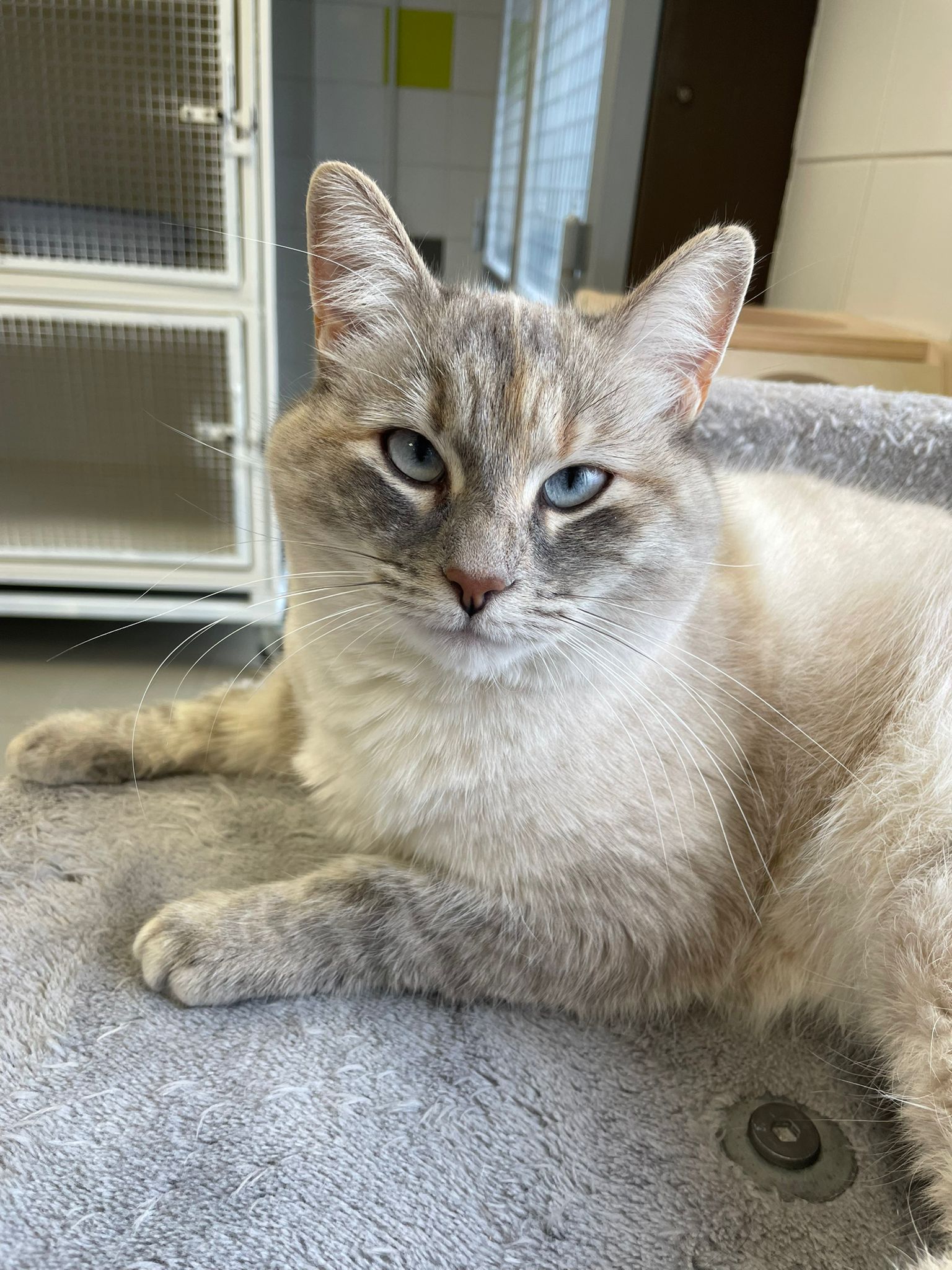 Louise est une jolie minette de 3 ans qui a de quoi faire chavirer les cœurs avec son pelage lumineux, ses beaux yeux bleus et son regard atypique.