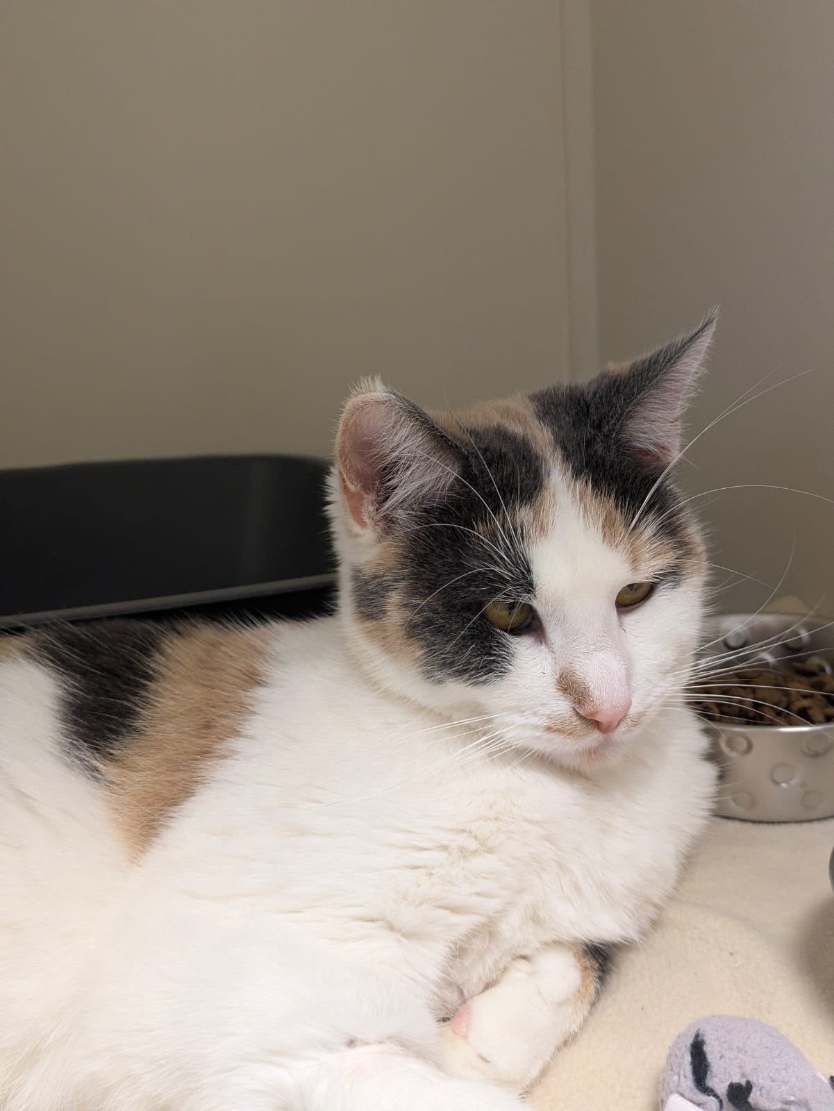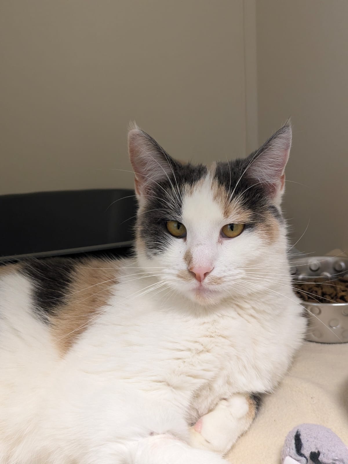 Elle est maintenant câline et douce, et ne semble en revanche pas apprécier les autres chats. Elle est habituée à vivre en appartement mais une maison pourra bien sûr lui convenir aussi. Nous pensons que des enfants en bas âge pourraient la stresser, elle sera donc plus à son aise dans un foyer plus tranquille.