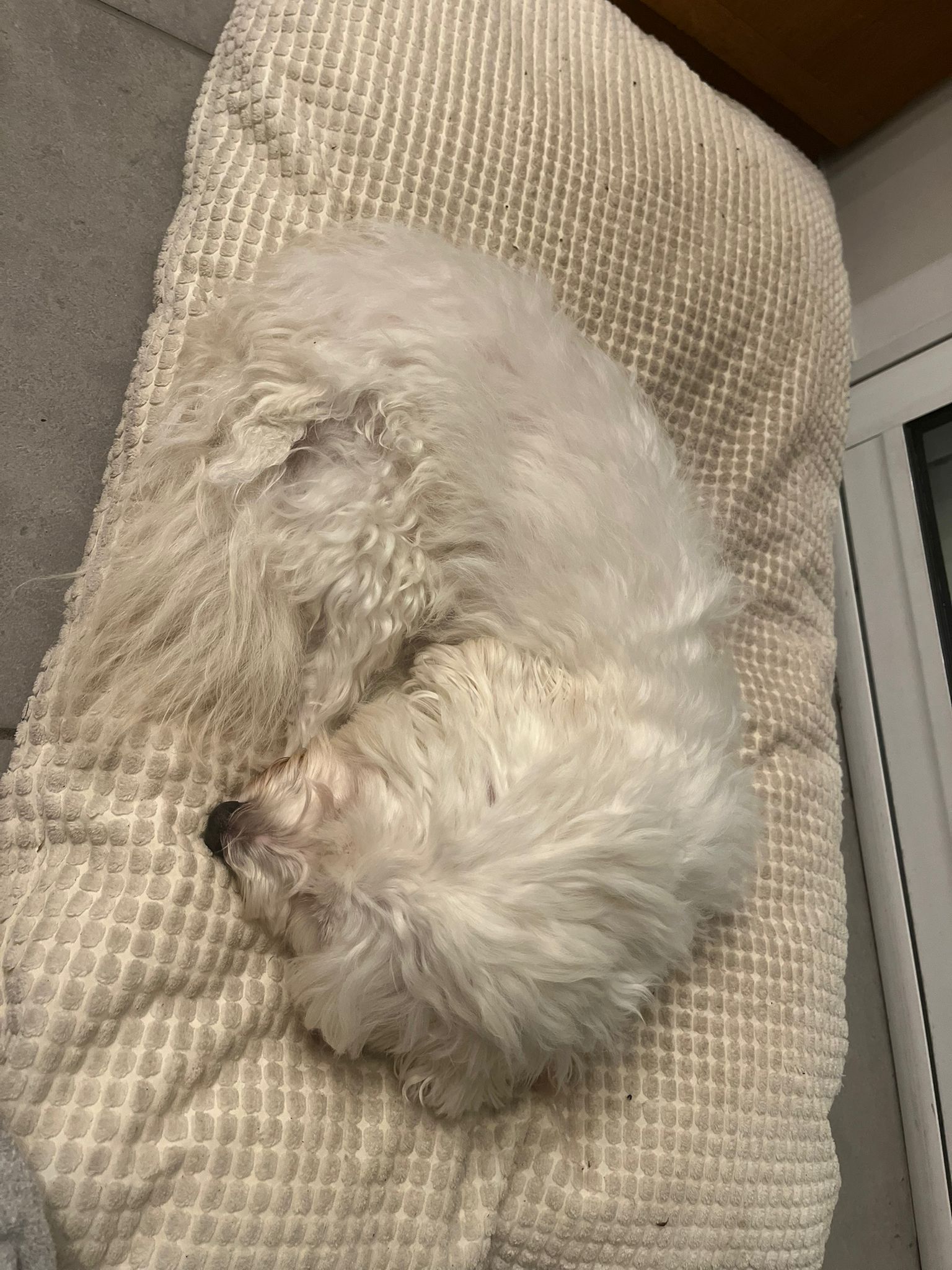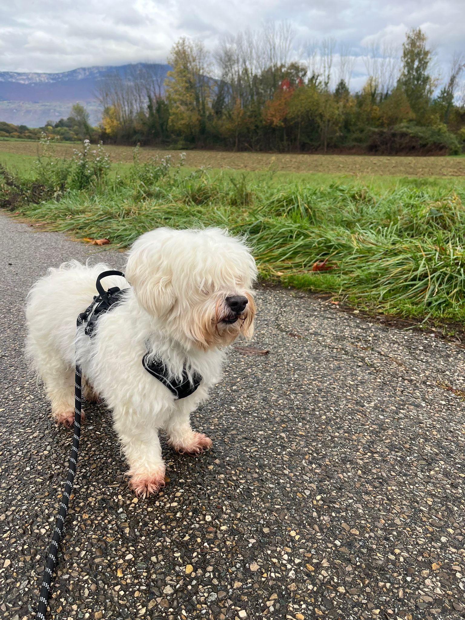 Moon est un chien gentil, calme et très affectueux. Il n’aime pas trop la solitude et adore suivre les gens partout. Un peu stressé dans un nouvel environnement, il s’adapte pourtant très vite une fois en confiance