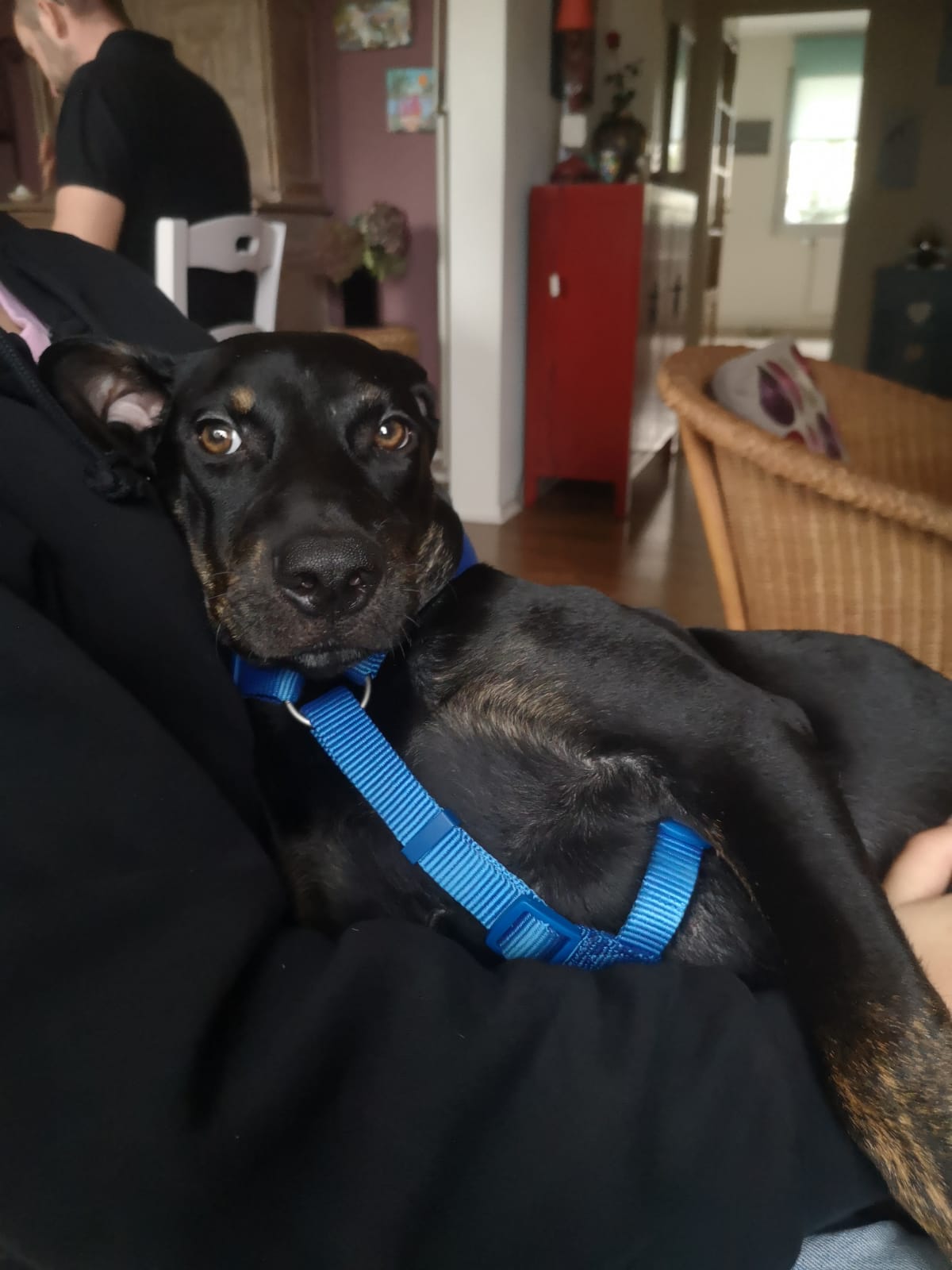 Nabou est une jeune chienne pleine de vie, très joueuse et débordante d’énergie, mais qui sait aussi vite se poser pour devenir une vraie petite câline en quête de contact et d’affection. Un peu timide avec les inconnus au début, elle se détend rapidement dès qu’elle se sent en confiance.