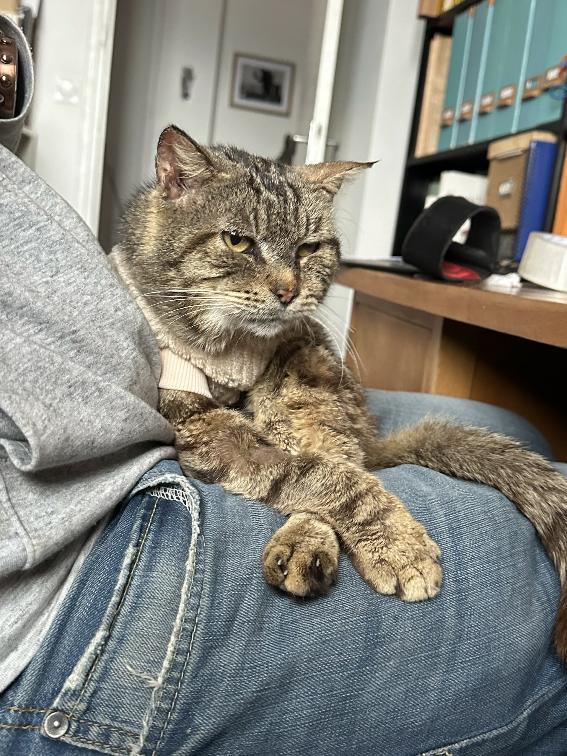 En résumé, Newton est un chat tranquille, doux et attachant, qui mérite une retraite sereine et confortable auprès d’une famille prête à respecter son rythme et ses petites particularités.