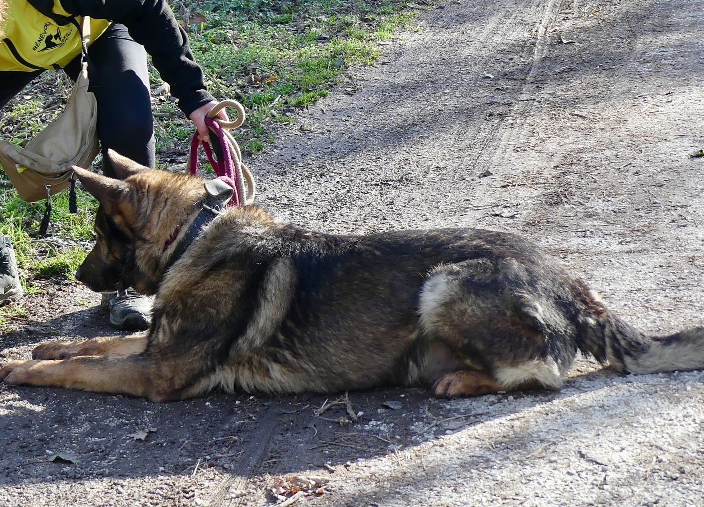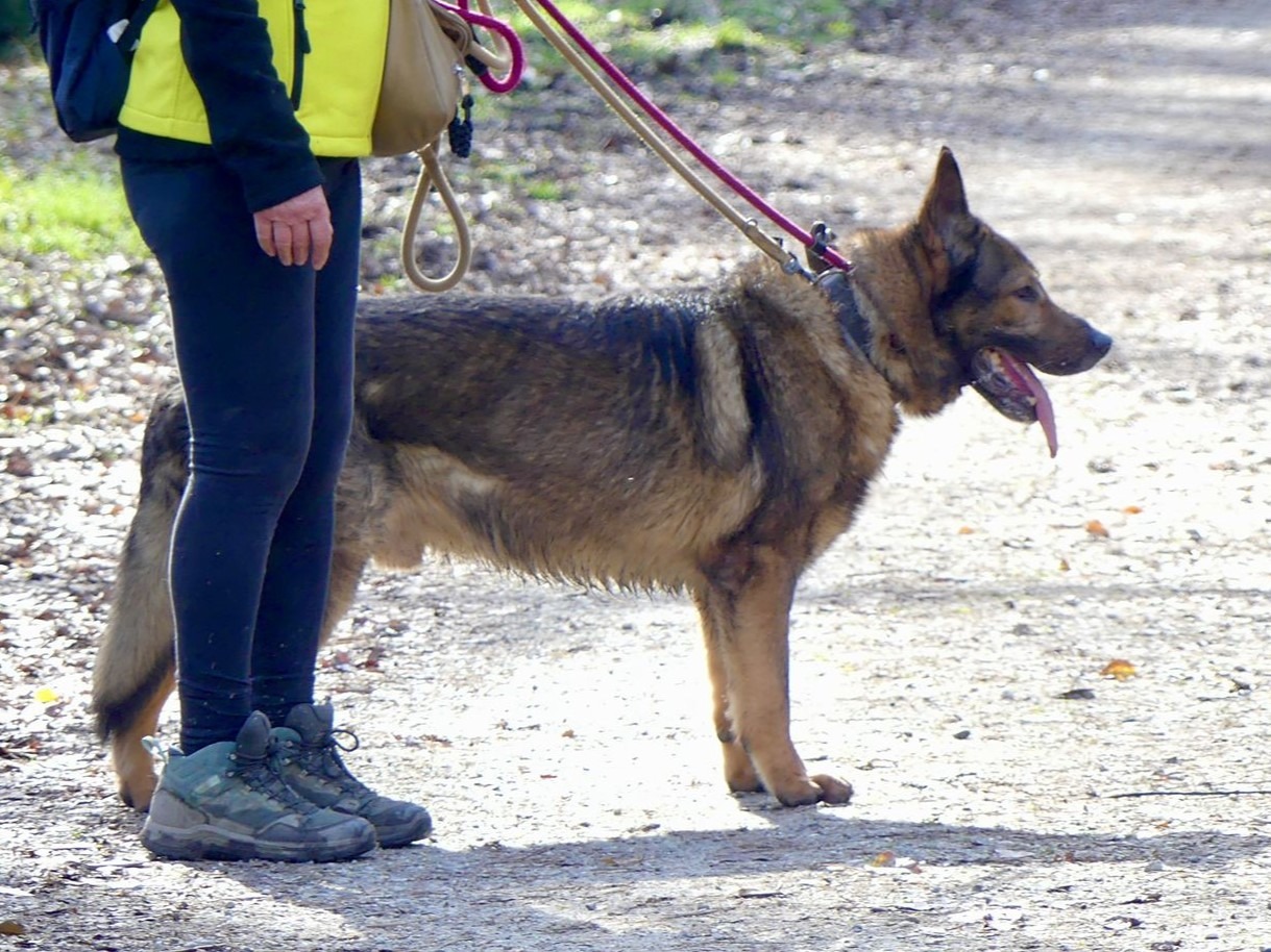 J’ai eu la chance d’être pris en charge par Cyril Pellat-Finet d’Educ Pile Poil et maintenant j’accepte les caresses de la bénévole qui s’occupe de moi et me balade régulièrement.