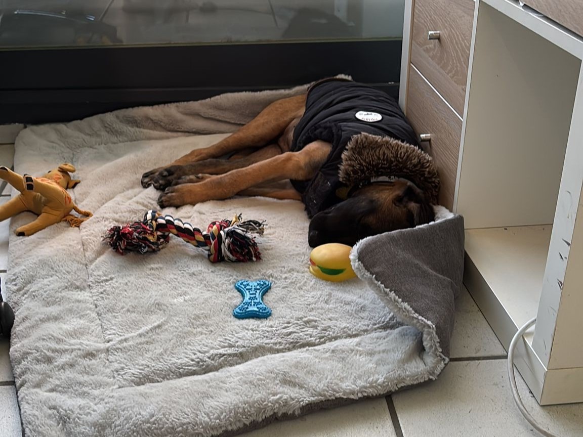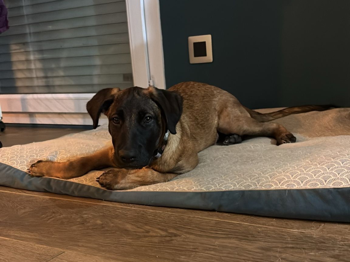 C’est un petit loulou qui alterne entre des moments d’énergie débordante et de longues siestes bien méritées. Intrépide, il adore explorer son environnement (escaliers compris… même quand c’est interdit !).