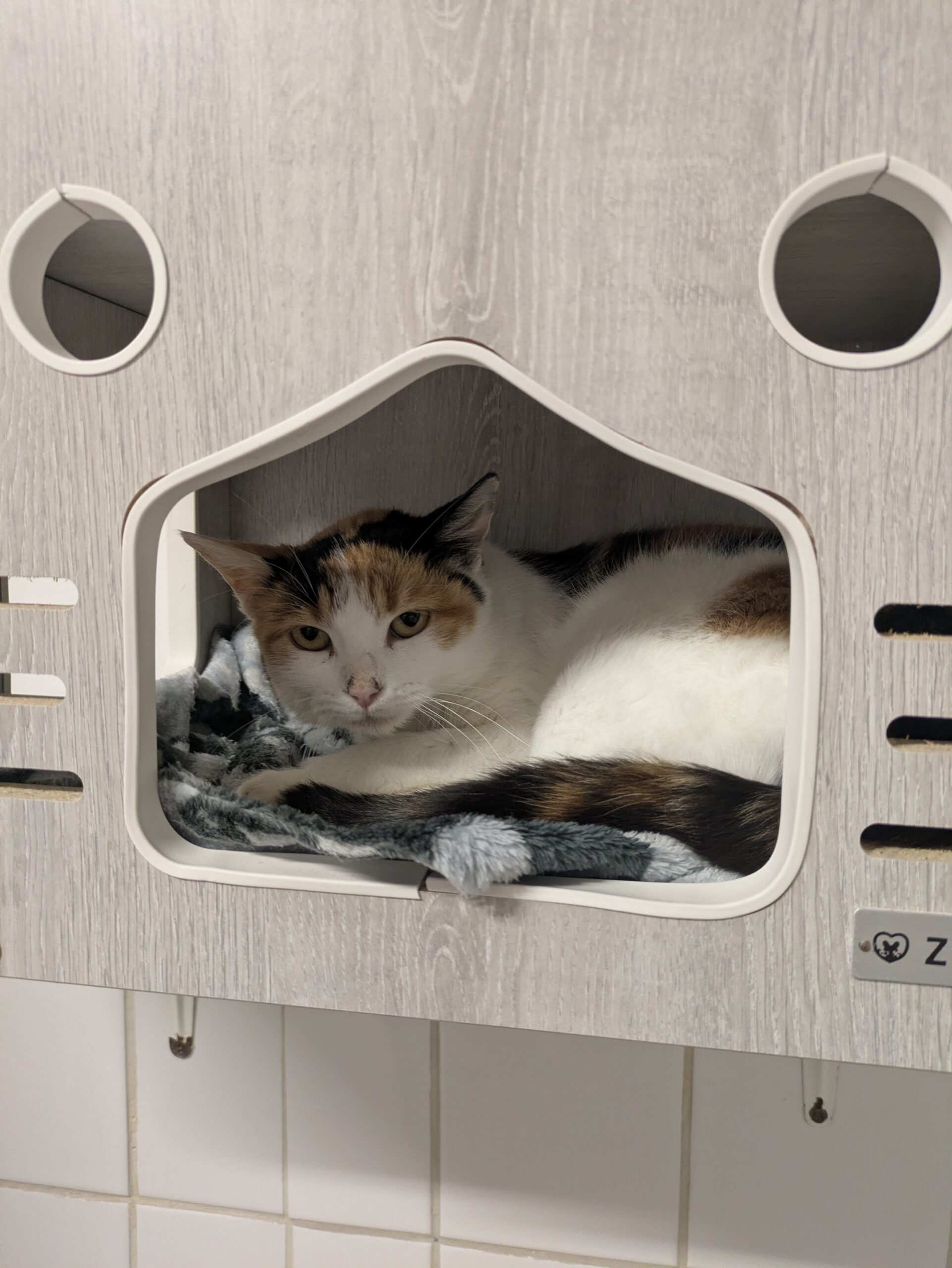 Arrivée de fourrière, Sally est un peu timide aux premiers abords mais après quelques caresses… Finalement on se détend un peu les patounes ! Elle aura tout de même besoin d’un foyer calme pour être totalement sereine.