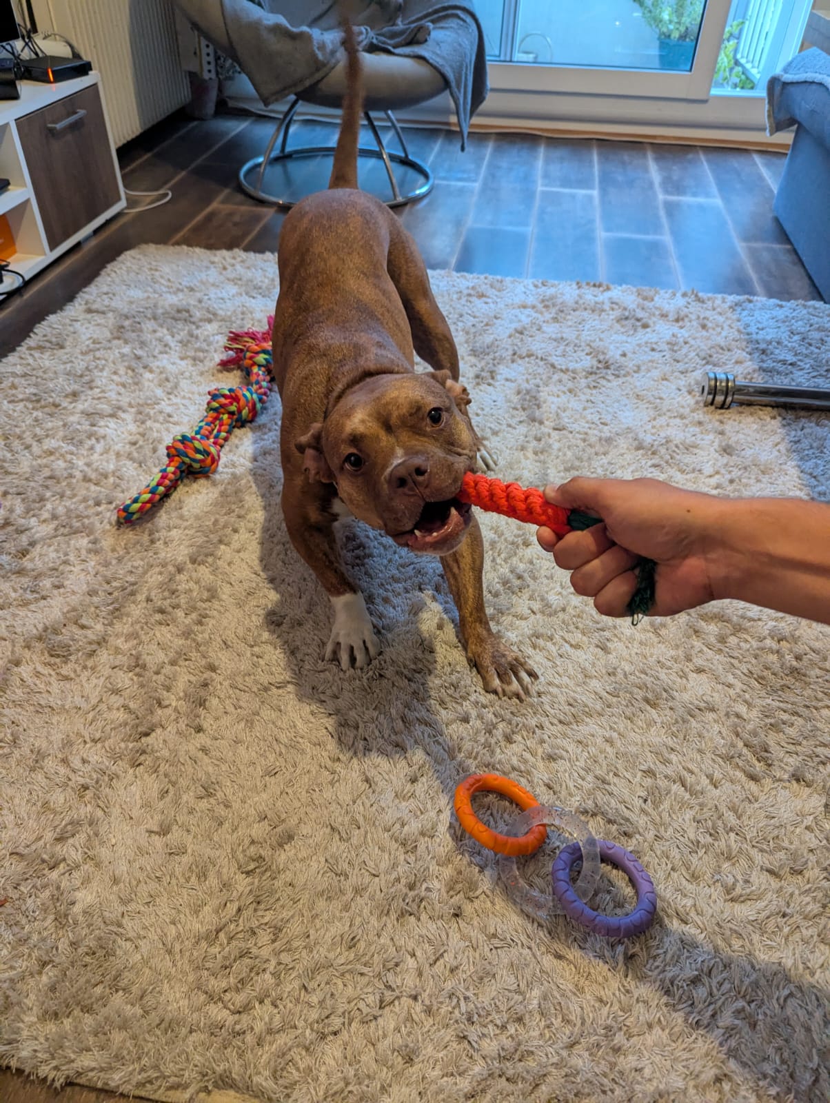 Elle sera parfaite pour une famille qui recherche une chienne adorable, joueuse et surtout hyper rigolote ( c’est un vrai clown une fois en confiance ) avec qui avoir de vrai fou rire .