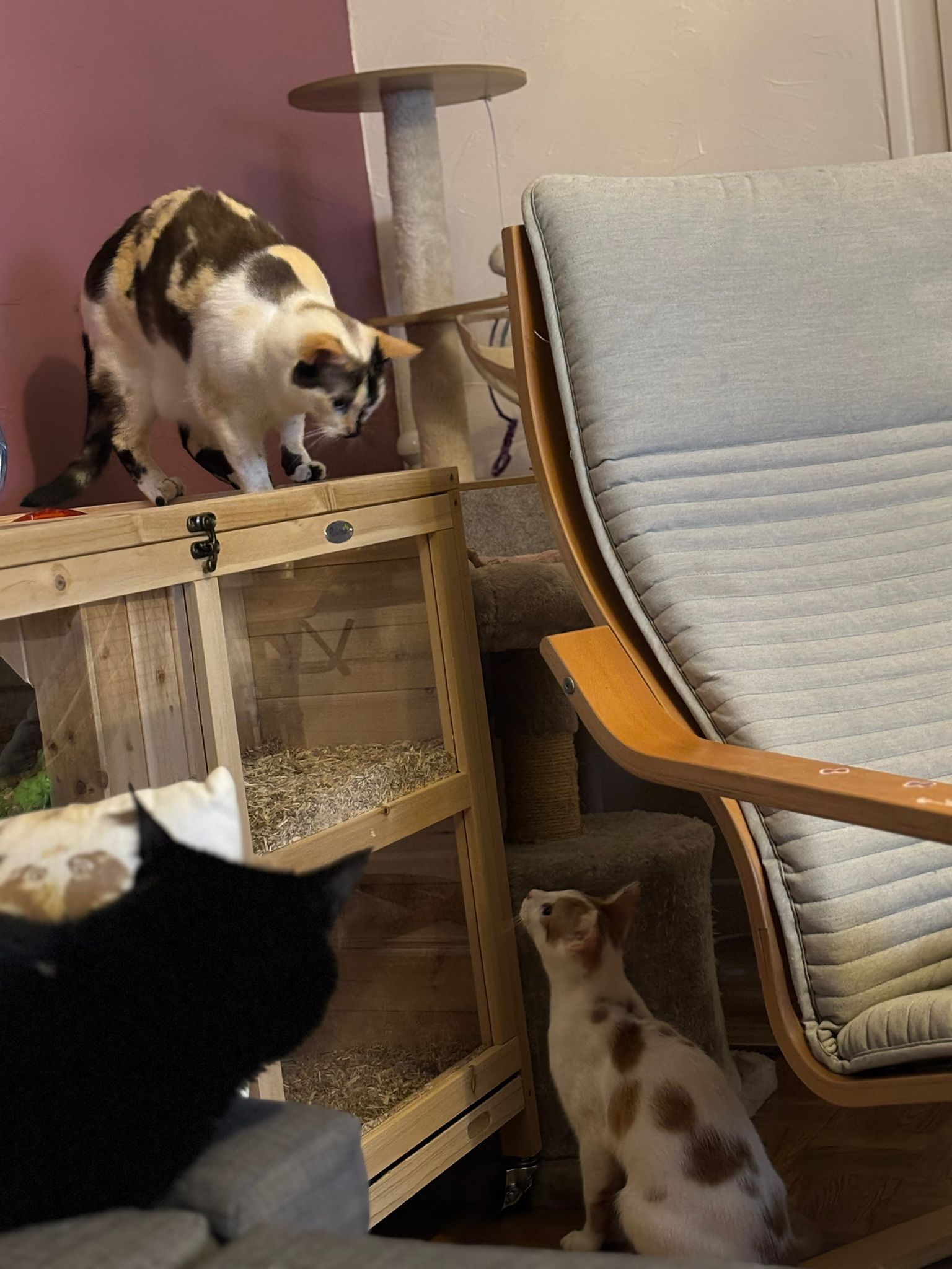 Tac est un chat encore un peu craintif avec les humains, mais il progresse doucement chaque jour. Il aime jouer et explorer l’appartement aux côtés de son frère Tic, ce qui lui donne confiance et sécurité