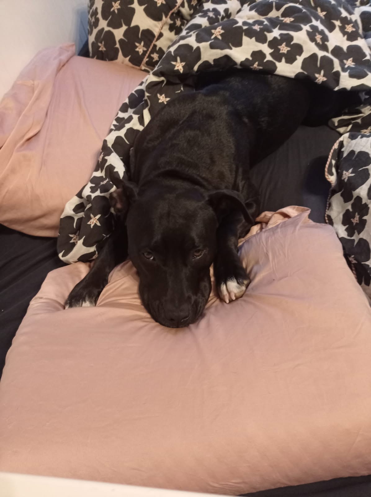 Vickie est une adorable louloute croisée Staff, arrivée de fourrière il y a quelque temps.