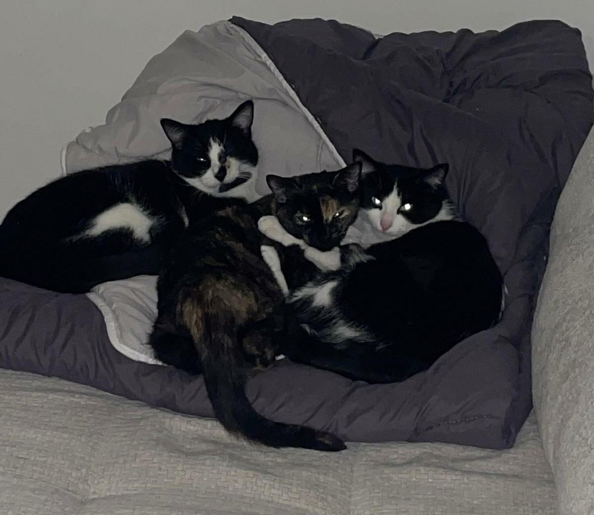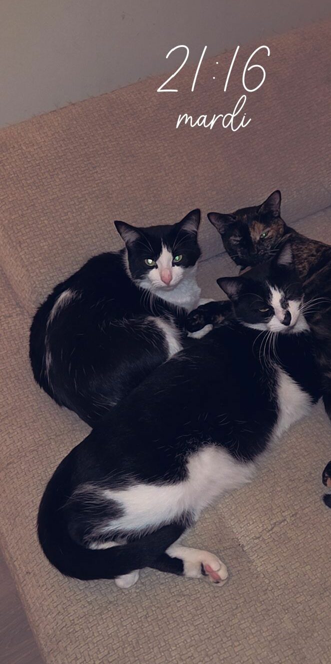 Avec les autres chats, c’est une autre histoire : elle se détend, partage les siestes, joue et se sent vraiment bien à leurs côtés.