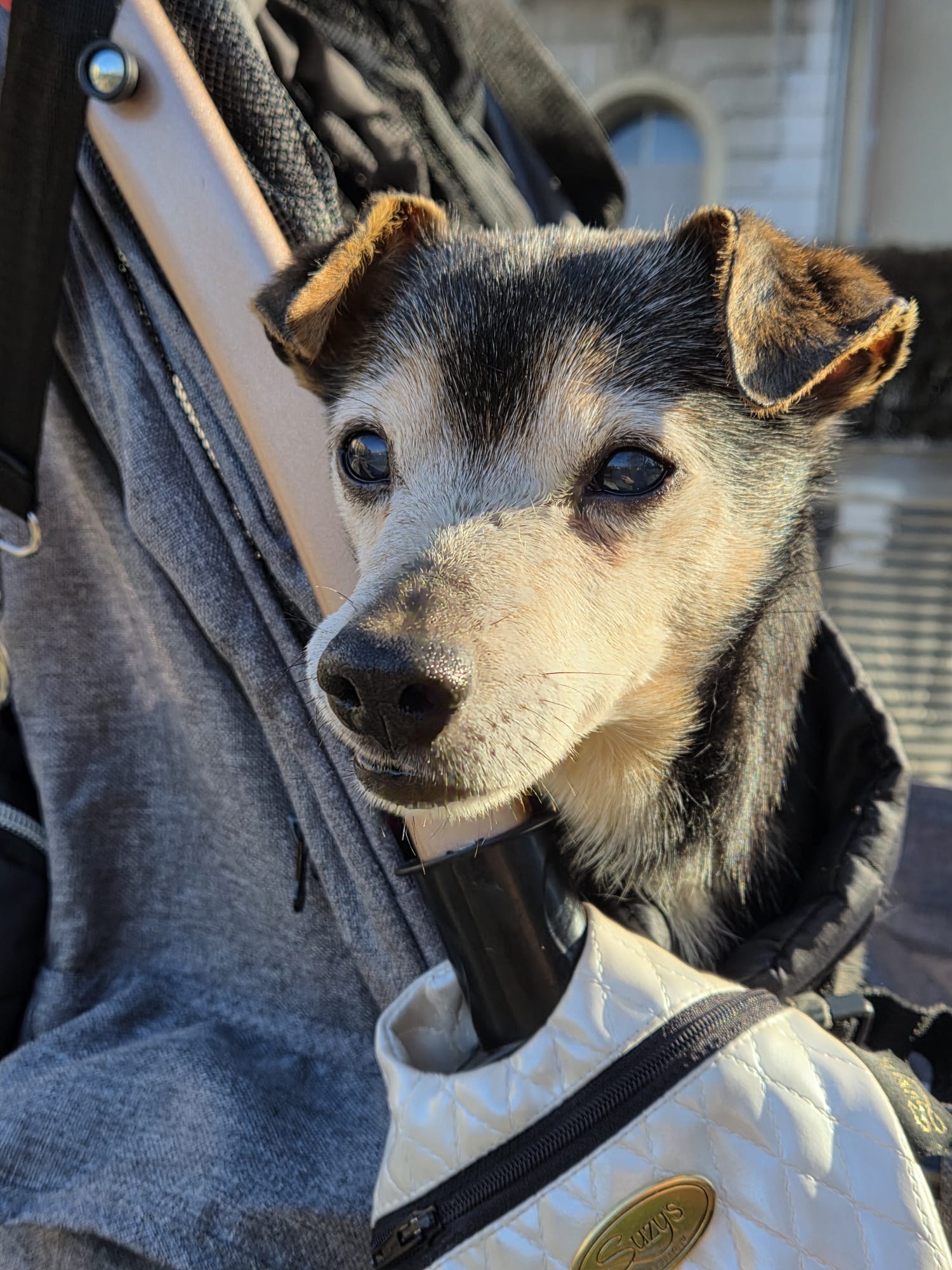 Je m’appelle Winny, un tout petit chien de 4,8 kg, croisé Pinscher.